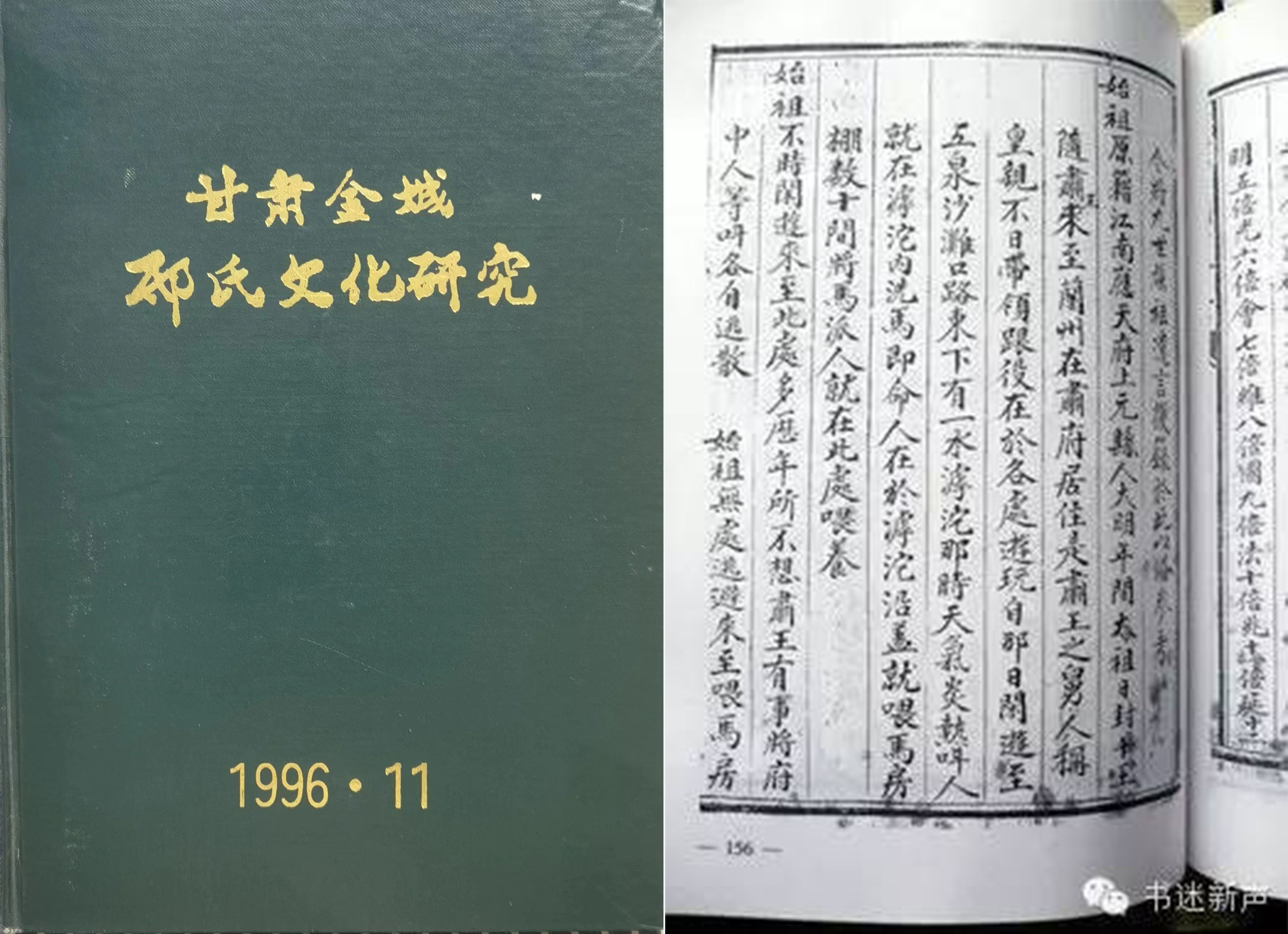 (左:《甘肃金城邸氏文化研究》,邸维积等,内部读物,1996年印刷,提供:邸亮;右:《金城邸氏家谱》,提供:书迷新声。)